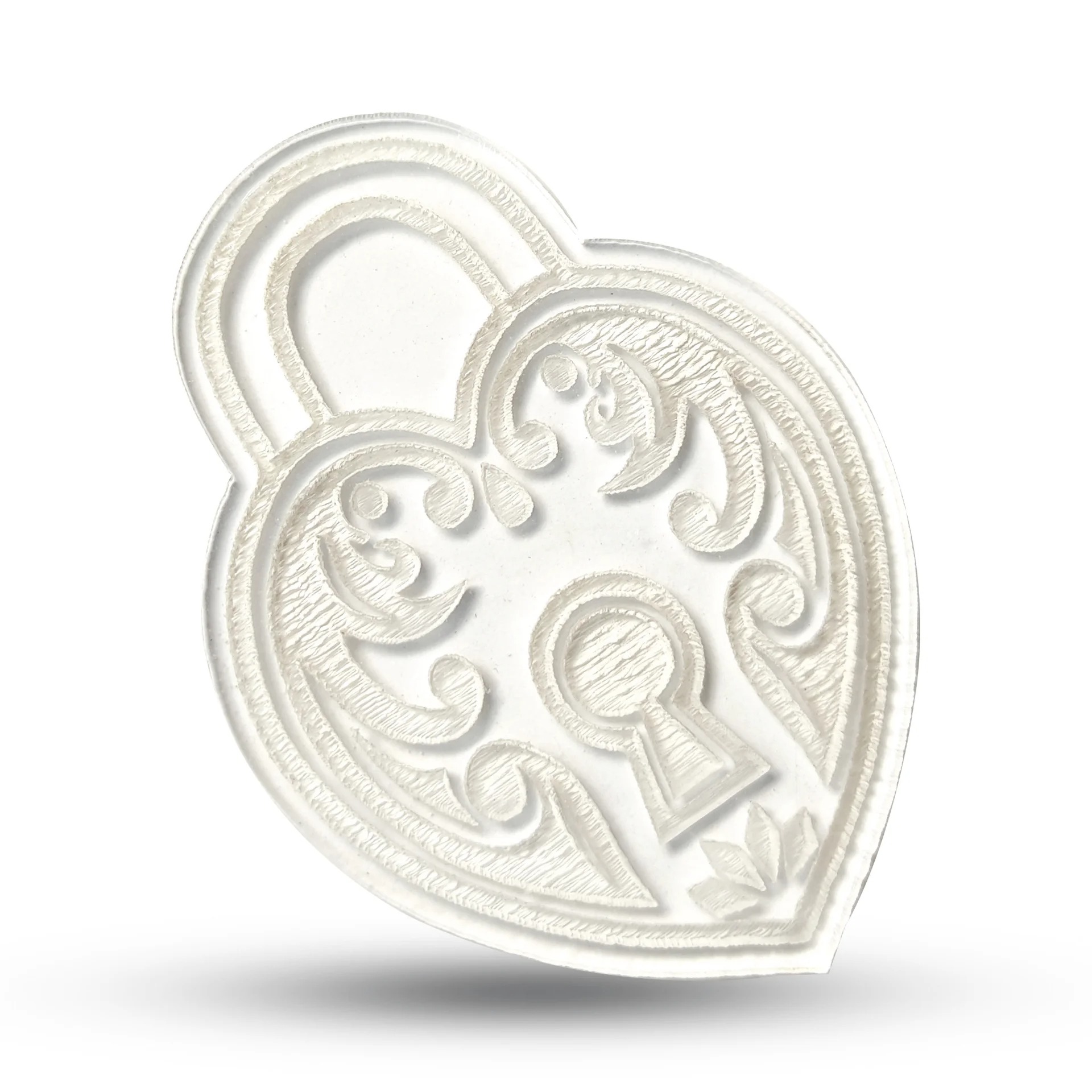 طرح قفل معمولاً مفاهیمی مانند راز، امنیت، عشق یا پیوند را تداعی میکند و برای مناسبتهایی مثل ولنتاین، سالگرد ازدواج، جشنهای عاشقانه یا حتی تمهای فانتزی بسیار مناسب است. استفاده از این ابزار بسیار ساده است: ابتدا با کاتر، خمیر را به شکل قفل برش میزنید و سپس با استامپ، نقش مورد نظر را روی آن ایجاد میکنید تا نتیجهای دقیق، تمیز و چشمنواز به دست آید.