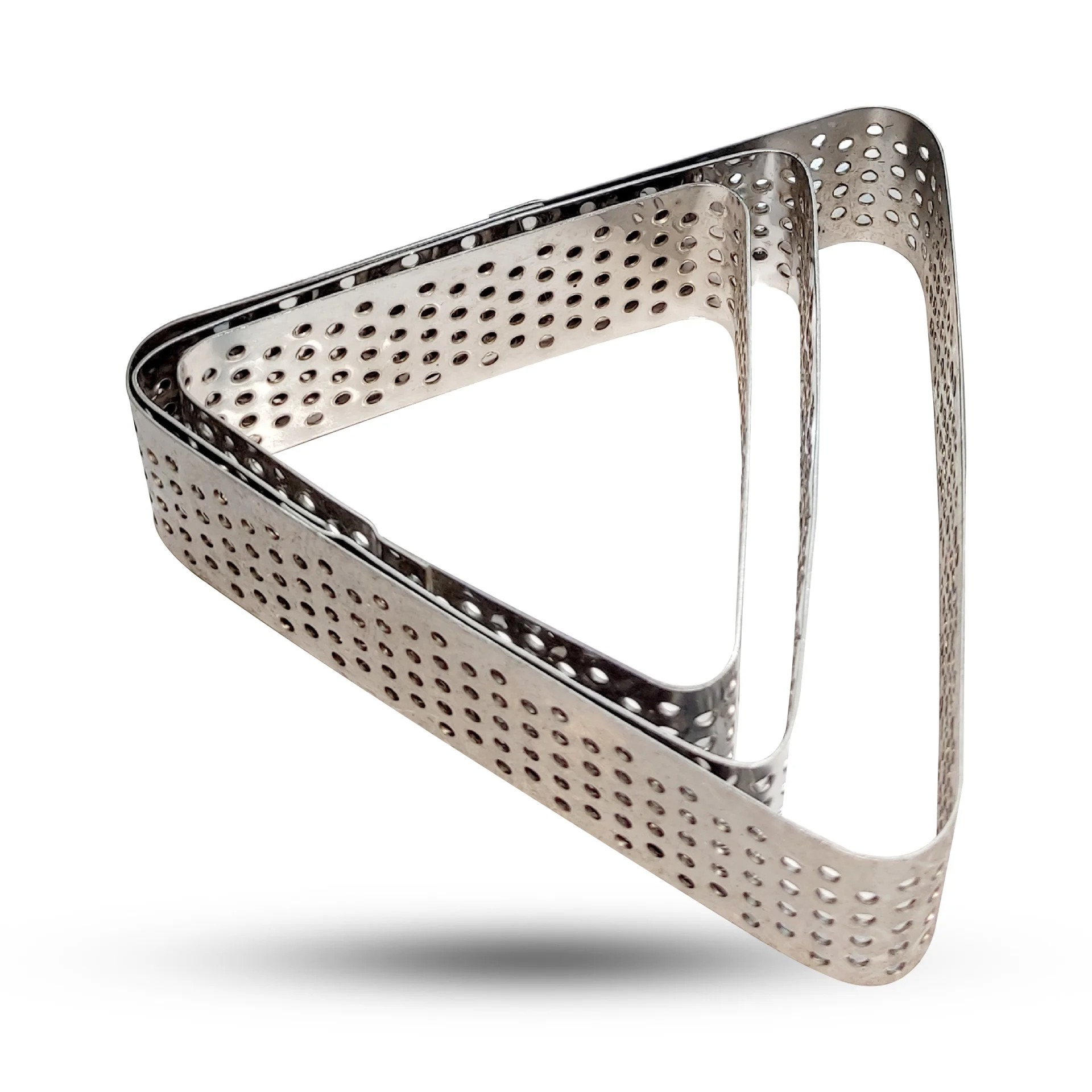 رینگ تارت مثلث ۸ سانتی‌متر، یکی از قالب‌های خاص و منحصربه‌فرد برای تهیه تارت‌هایی با فرم مثلثی است که جلوه‌ای متفاوت و حرفه‌ای به دسرهای شما می‌دهد. این قالب کوچک، به‌ویژه برای تهیه دسرهای تک‌نفره، تارت‌های مجلسی و فینگر فودهای شیرین بسیار مناسب است و جلوه‌ای چشم‌نواز به میزهای پذیرایی و ویترین قنادی‌ها می‌بخشد.