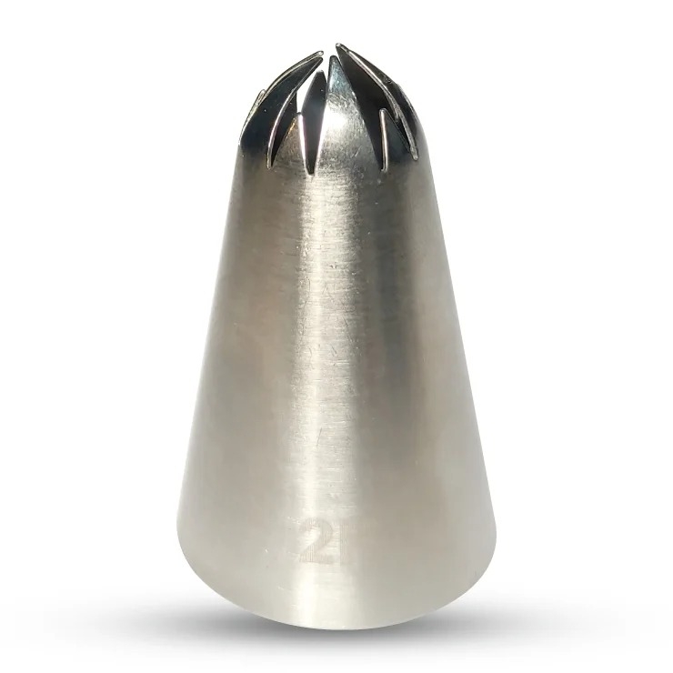 ماسوره ۲F، ابزاری حرفه‌ای و دقیق برای خلق طرح‌های زیبا و پیچیده در تزئین کیک و شیرینی است. این ماسوره با طراحی خاص و دهانه‌ی شیار‌دار، امکان ایجاد خطوط موج‌دار، گلبرگ‌های نرم و طرح‌های سه‌بعدی را به آسانی فراهم می‌کند و به قنادان کمک می‌کند تا آثار خود را با جلوه‌ای چشم‌نواز و هنری تکمیل کنند.