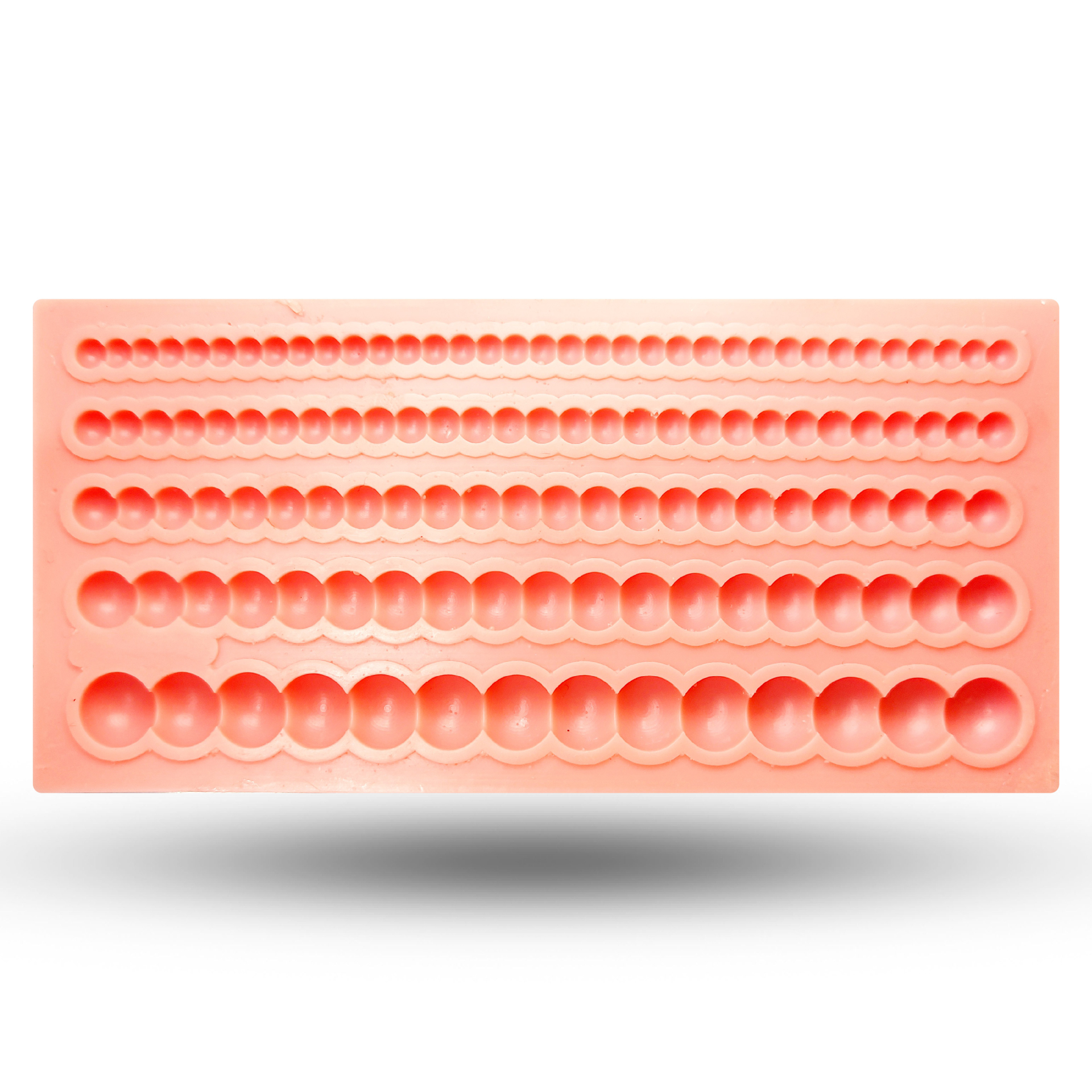 مولد فوندانت مروارید 5 ردیفه، ابزاری فوقالعاده برای خلق تزئینات لوکس و ظریف در هنر شیرینیپزی است! این قالب سیلیکونی با طراحی دقیق، امکان ساخت ردیفهای مرواریدی سهبعدی و زیبا را از فوندانت، خمیر مارزیپان و خمیر شکلاتی فراهم میکند.