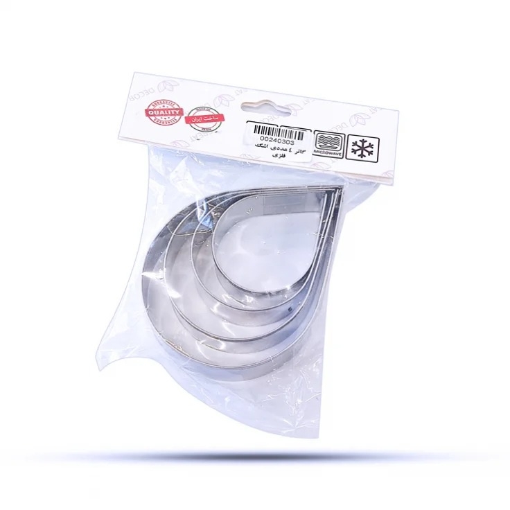کاتر ۴ عددی اشک فلزی مجموعهای کاربردی و زیبا برای قنادان است که شامل چهار قالب با طرح اشک در اندازههای مختلف میباشد. این کاترها امکان قالبزنی دقیق و تمیز طرح اشک را روی انواع خمیرهای تزئینی مانند فوندانت، مارزیپان، بیسکویت و سایر خمیرها فراهم میکنند. طراحی ساده و شیک این قالبها به قنادان اجازه میدهد تا تزئینات متنوع و جذابی برای کیکها و شیرینیهای خود ایجاد کنند و جلوهای خاص به محصولات قنادی ببخشند. جنس فلزی مقاوم و ضدزنگ این قالبها دوام بالا و سهولت در استفاده را در محیطهای حرفهای قنادی تضمین میکند.