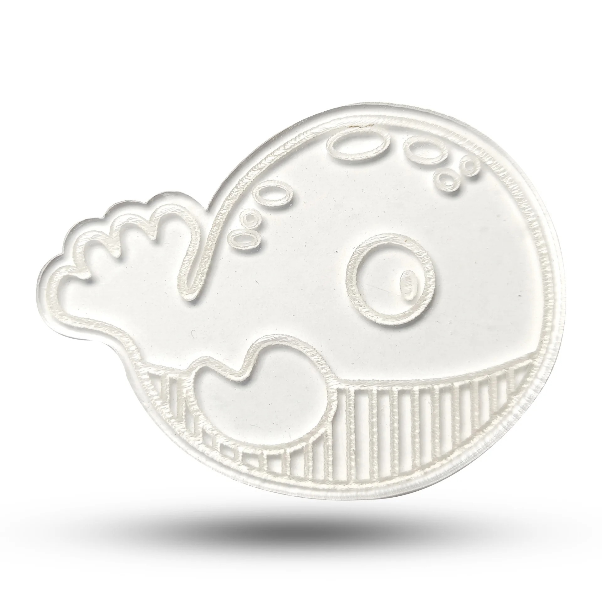 طرح نهنگ معمولاً حس آرامش، دنیای زیر دریا و ماجراجویی را تداعی میکند و برای مناسبتهایی مثل جشن تولد کودک، تم دریایی، مهمانیهای تابستانی یا حتی دسرهای فانتزی بسیار مناسب است. استفاده از این پک بسیار ساده است: ابتدا با کاتر، خمیر را به شکل نهنگ برش میزنید و سپس با استامپ، طرح را روی آن ایجاد میکنید تا نتیجهای دقیق و جذاب به دست آید.
