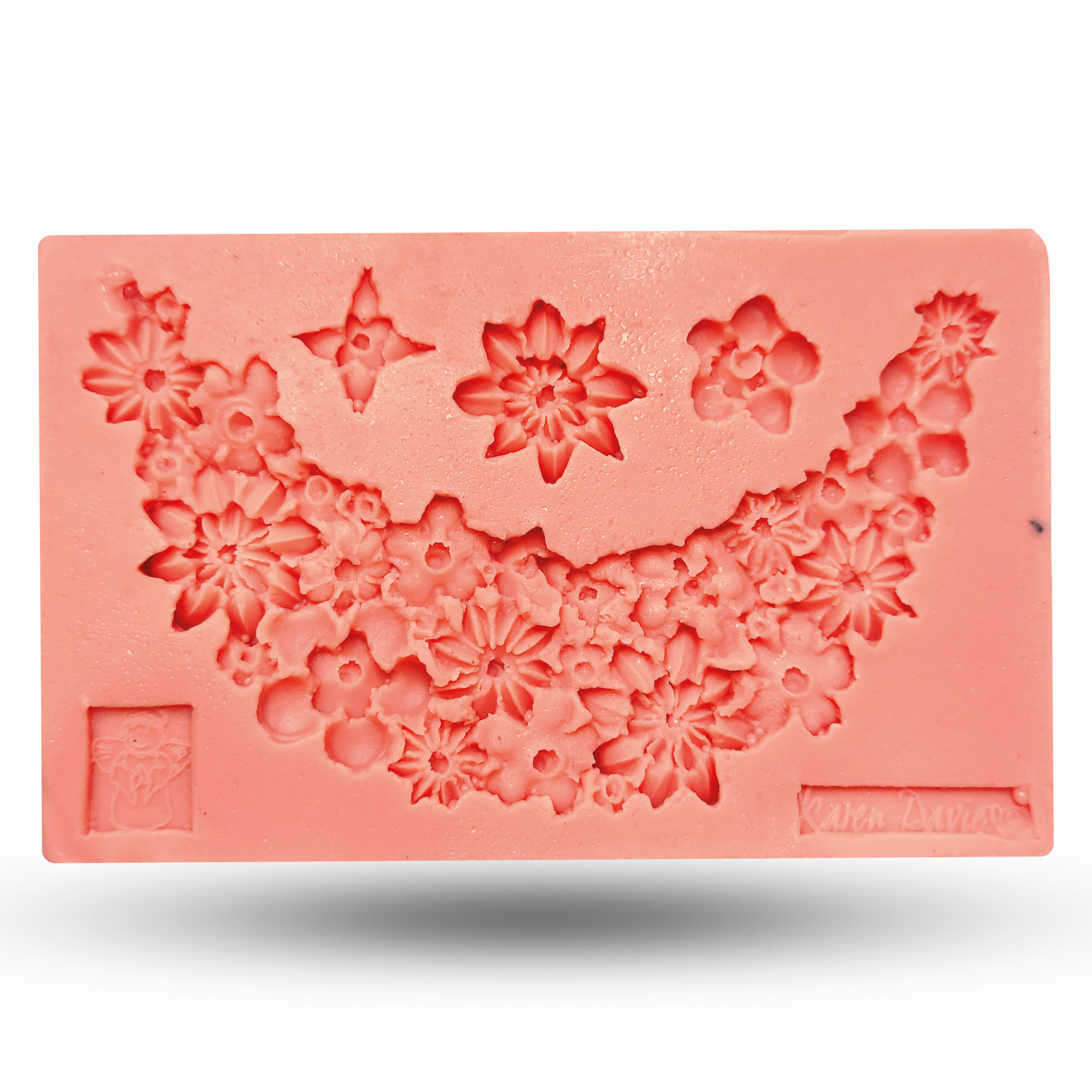 طراحی ظریف و چشمنواز – این قالب با جزئیات دقیق، نقشهای گلدار زیبا و برجسته را روی فوندانت، مارزیپان و خمیر شکلاتی ایجاد میکند.