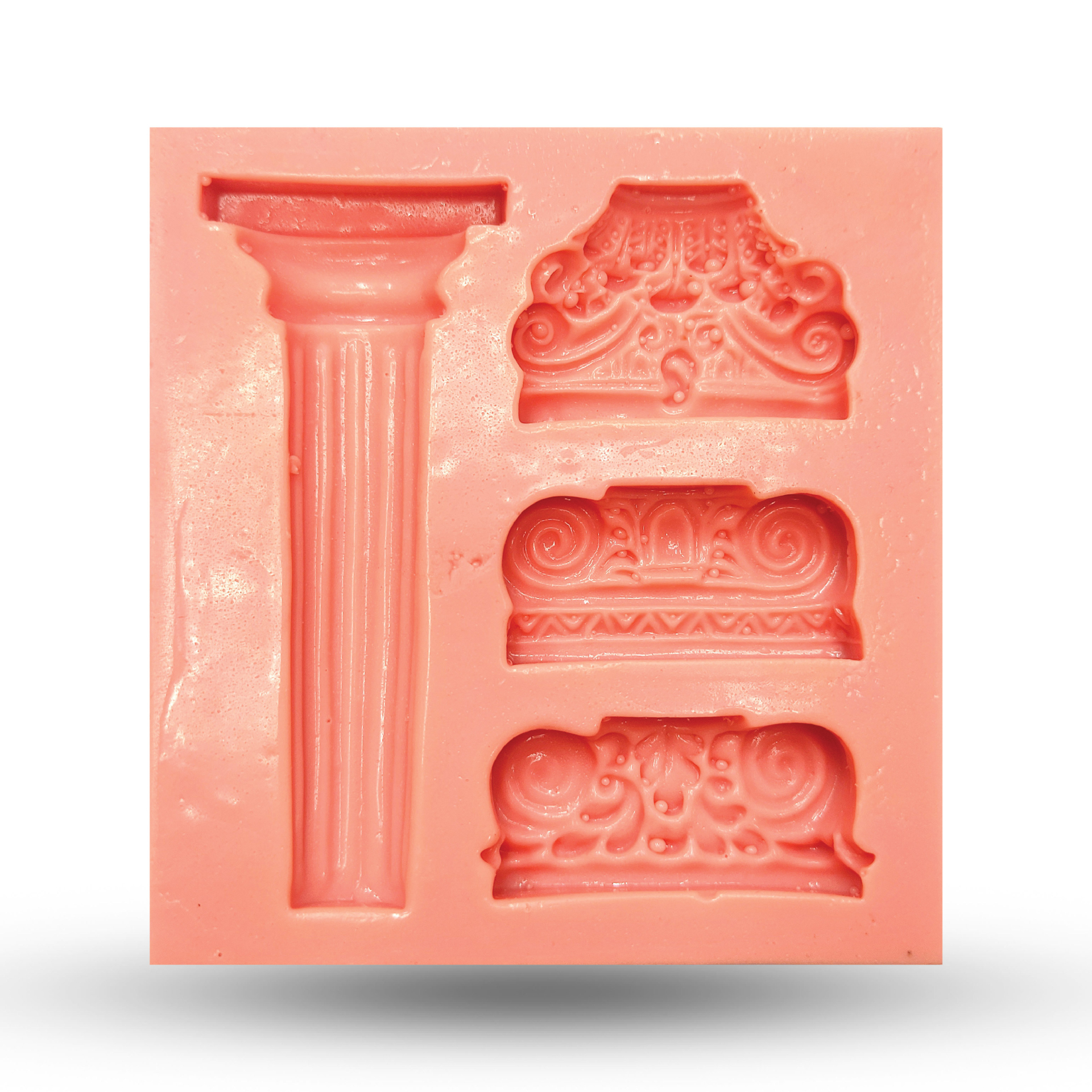 طراحی کلاسیک و برجسته – این قالب با جزئیات دقیق، طرحی از ستونهای معماری فاخر را روی فوندانت، مارزیپان یا خمیر شکلاتی ایجاد میکند.