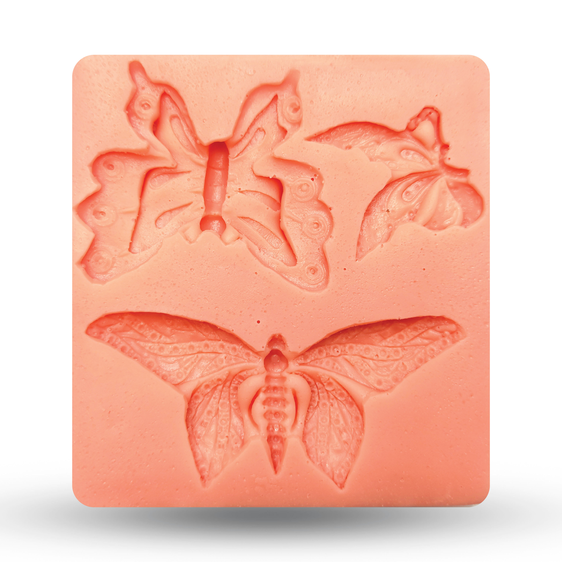 طراحی ظریف و متنوع – این قالب شامل سه مدل پروانه با جزئیات دقیق است که روی فوندانت، مارزیپان یا خمیر شکلاتی نقش میبندد.